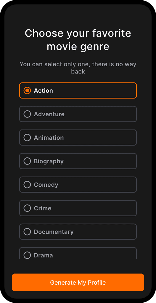 Review your profile details and get a sneak peek at your personalized movie experience.